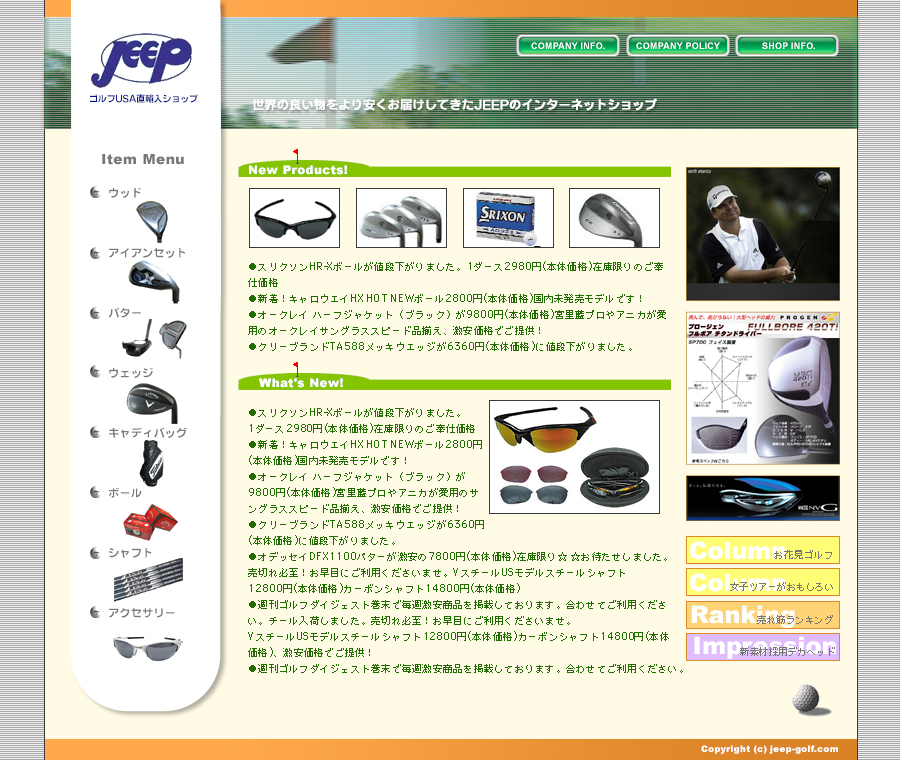 ゴルフ用品販売と一目でわかる KEYEORDS:らしさ・グリーン |